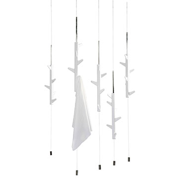 - závěsný věšák OKA A - materiál chrom/polyuretan, 6 otočných háčků, pohyblivé tělo věšáku 645mm, jednoduchá aretace pro nastavení výšky, délka lanka 2,5m,