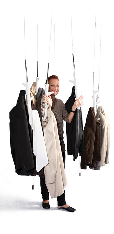 Závěsné věšáky jsou instalovány na strop, můžete je tedy využít i tam, kde nemáte volné stěny. Visí elegantně ze stropu dolů, spodní závaží činí věšák stabilní. Jejich podobu můžete ovlivnit i libovolným natočením háčků dle Vaší fantazie nebo potřeby. Délka lanka stropní věšáku OKA je navržena na standardní výšku místnosti, v případě potřeby je možné objednat delší lanko za příplatek.
